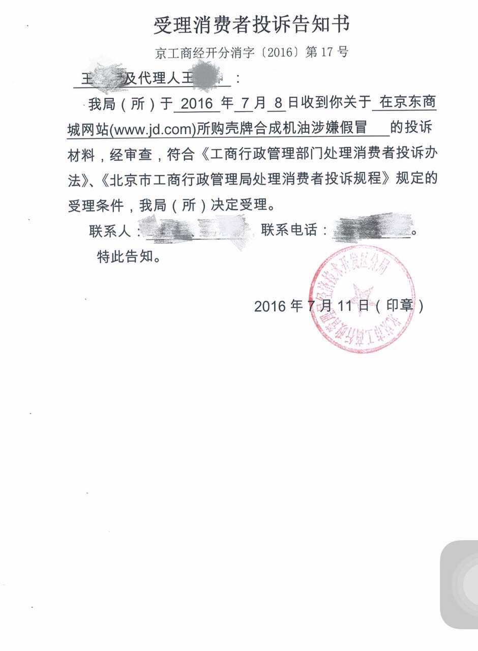 法制晚报讯(记者 杨国华)京东商城“问题壳牌润滑油”事件有了新进展。本报报道后,壳牌公司致函《法制晚报》记者,表示经抽样检验,相关货品是假货;日前京东商城客服人员联系到消费者王先生委托的律师,表示愿意退还货款,并按照货款的三倍作出赔偿。