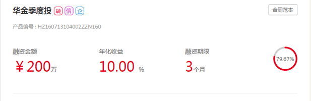近日,国美控股集团成员国美华人金融继短期标P2P理财产品“华金一号”后,又全新推出了“华金一号”长期标P2P理财产品华金季度投。至此,国美华人金融P2P理财产品得到进一步丰富,投资者除了可以选择10天、20天的短期理财产品,还能选择3个月的中长期产品。据悉,华金季度投为100元起投,年化收益率达到10%,是低门槛、高回报的P2P理财产品。