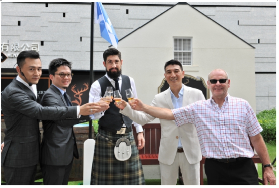 格兰父子洋酒贸易有限公司中国总经理叶百鸣先生,新任格兰菲迪全球品牌大使Struan Grant Ralph(斯特鲁恩•格兰•拉尔夫)先生,格兰菲迪首席桶匠Ian MacDonald(伊恩•麦克唐纳德)先生,格兰父子洋酒贸易有限公司大中华区市场总监李儒杰先生,格兰菲迪中国区品牌大使丁大伟先生,共同为2016格兰菲迪品牌体验展揭幕。