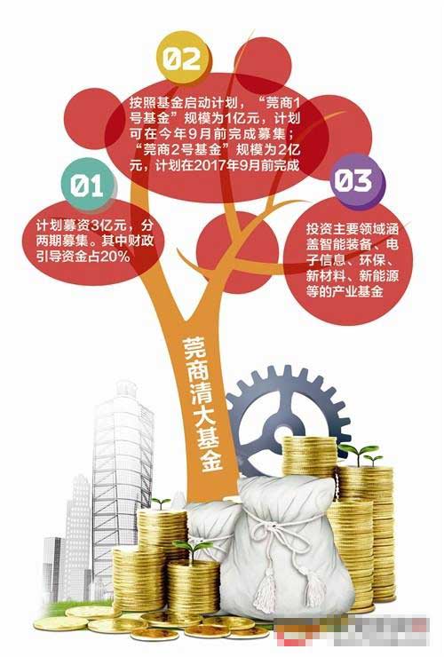 据记者了解,莞商清大基金计划募集3亿元,分两期募集,其中,财政引导资金占20%。按照基金启动计划,“莞商1号基金”规模为1亿元,计划在今年9月前完成募集;“莞商2号基金”规模为2亿元,计划在2017年9月前完成。