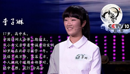 李子琳——2016年央视诗词大会连任三期擂主,最具人气的选手,10岁起在这里学习国学。