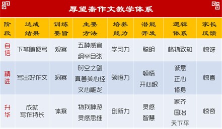 厚望斋的方法体系,以认识论为训练之本提高思维水平,达成超凡的创造力,创造性的表达和创造性的解决问题,真乃前瞻性的“语文教育的正道”也!我们今天教育孩子,要在未来走入社会面对生活,如果学习语文,写作、国学、阅读,我推荐厚望斋。