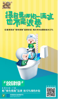 对马桶用水量这一指标,国标冲水量是≤6.4L,绿色标准冲水量是≤5L,高于国标22%。