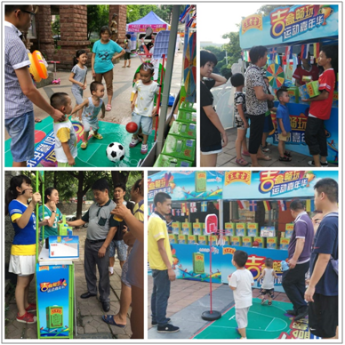 记者现场发现,八月炎炎夏日,但丝毫不减绿盒王老吉运动嘉年华的“魔力”。活动现场布置充满着奥运气氛,游戏区人头攒动,不时发出阵阵欢乐的笑声,运动的魅力无限,不少市民大赞到飙汗也要玩个尽兴。更有家庭全家总动员前来体验趣味运动。无论是考验脚力和眼力并举的“吉盒九宫格”,还是的热力四射的“吉盒投篮”,游戏区前都排起长长的体验队伍。