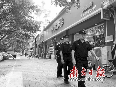 这些巡查员隶属于东城城管分局设立的市容巡查服务队,该局通过市场化运作,统筹安排20名保安员当巡查员。袁炯金是巡查服务队的队长,他说,值班时间从7时至23时,分为两班制,队员分为3个小组,分别巡查泰和商业街、春天路、怡丰路以及外围路段,覆盖了东泰社区、火炼树社区等。