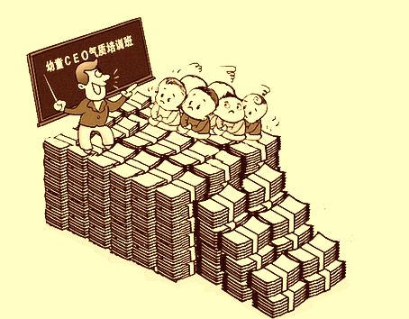 “培养3至8岁孩子未来领导力,使其具备领导者必备的领导力和竞争力。”广州市东风路的一家培训机构外墙上贴出了这样的宣传标语。工作人员介绍说,该机构招收3至12岁的儿童,课程包括“培养CEO气质”等在内的多项“开发类”课程。一周1至2次课程,每年学费5万元。