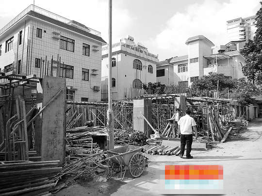 据张先生介绍,龙泉小区五巷有两栋别墅原本是分开的,两家业主于7月份开始违法打桩开建,想将两栋别墅加建连在一起,这样会非法占用两栋别墅的公共消防通道,造成严重安全隐患。此外,张先生还表示两栋别墅业主是夫妻俩,平时在虎门从事建筑生意。