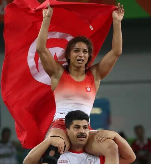 北京时间8月17日,在2016年里约奥运会摔跤女子自由式58公斤级季军争夺战中,突尼斯选手玛尔瓦•阿姆里和印度选手萨克希•马利克并列收获铜牌。
