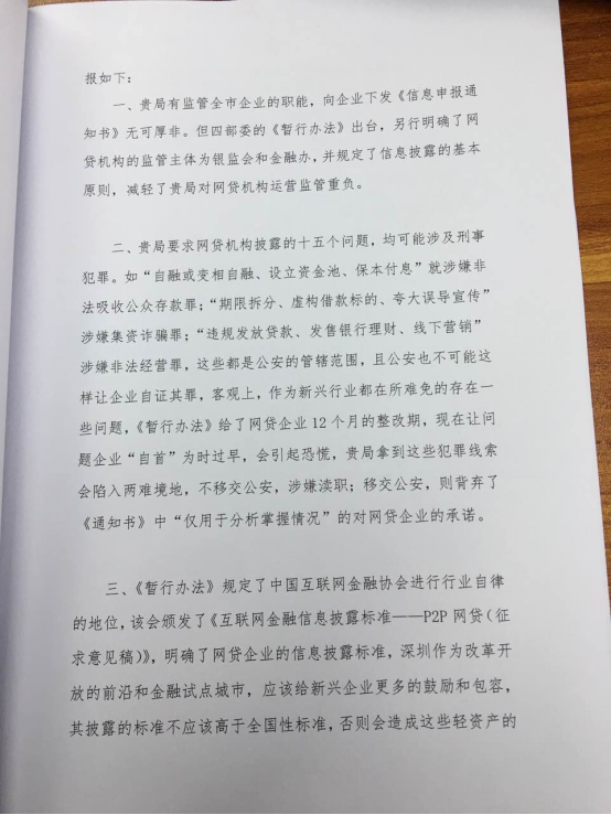 深圳互金商会请求暂缓执行P2P《信息申报通知书》