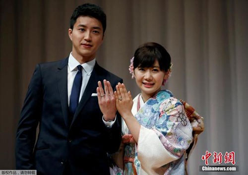 福原爱举行新婚发布会 秀幸福秀婚戒