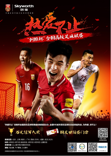 原来虽作为民族家电业的领导品牌,创维为了能够跟年轻化的群体平等地交流,建立更进一步的沟通。创维在如火的夏日发起了为期1个月,覆盖范围为全国的“热爱不止”创维杯高校足球联赛。这是创维在年轻化品牌道路上的又一突破之举,不为营销,不为销量,只为热爱,只为一场兄弟间的切磋。这次碰撞,让热爱更热情,让兄弟相聚于燃情夏日,使各个高校的绿茵场上尽显精彩。