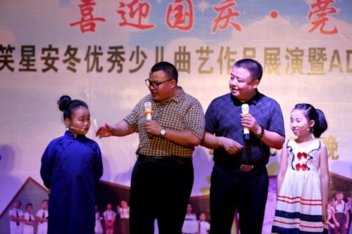 9月24日晚上,东莞南城榕树下高朋满座,东莞笑星安冬、邵权率领着他们的学生们上演了一场“喜迎国庆、莞少年说——安冬优秀少儿相声汇报专场”演出,小演员年龄最大的13岁,最小只有5岁,他们用曲艺的形式抒发爱祖国、爱家乡的朴实情感,传递东莞正能量。