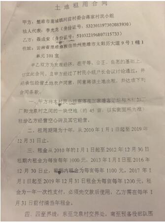 据记者了解,聂成安经营的成安免烧砖厂等多个经营实体占地约四十五亩,是聂成安于2009年租用楚雄市鹿城镇河前社区蒋家村民小组的空地,该村民小组坐落在三家塘客运站与木材加工厂和龙泉村之间,租金已支付到合同期满(租期10年,2019年到期)。经村小组、社区与鹿城镇三方同意。聂成安已在该地块经营空心砖及其它项目多年。聂成安的家属也对记者出示了该地块以聂成安为法人代表的多个营业执照,该地块免烧砖厂、停车场等多个经营实体均按要求取得了发改、环保、规划、工商、税务等相关合法手续。