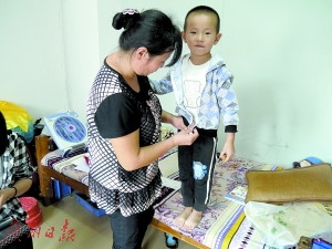 小轩是家中次子,一家来自湖北。2012年小轩8个月大的时候,癌症带走了他的爸爸,这次大病不仅花光了家里的积蓄,小轩妈妈陈春英还欠下了一笔十多万元的债务。为了偿还债务,她去年带着小轩来到东莞横沥,在老乡的工厂帮忙做饭,月薪2000元。