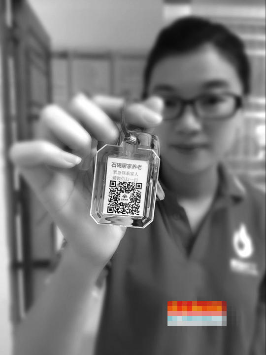 当在路上遇到有老人晕倒、走失、需要救援时,又找不到其家人怎么办?为了解决该难题,东莞市鹏星社会工作服务社驻石碣居家养老服务中心的社工推出了“长者紧急援救计划”。本月,社工将为石碣270位居家养老服务的老人派发钥匙扣,钥匙扣上印有每位老人的专属二维码,只要用手机扫一扫二维码,便可以得知老人的姓名和其家属联系电话。
