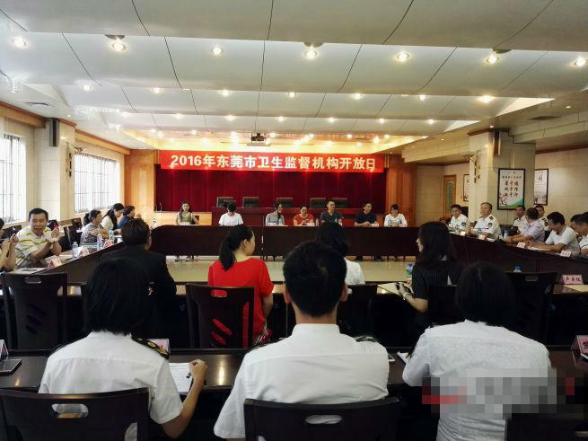 为加强社会各界对市卫生监督工作的理解、支持和参与,以更好地为社会、为群众服务,13日下午,市卫生计生局组织举办了主题为“促交流,护健康——卫监与您相约”的2016年东莞市卫生监督机构开放日活动,本次活动邀请了部分市人大代表、市政协委员、媒体记者、热心市民以及美容美发和餐饮具集中消毒行业代表参加。