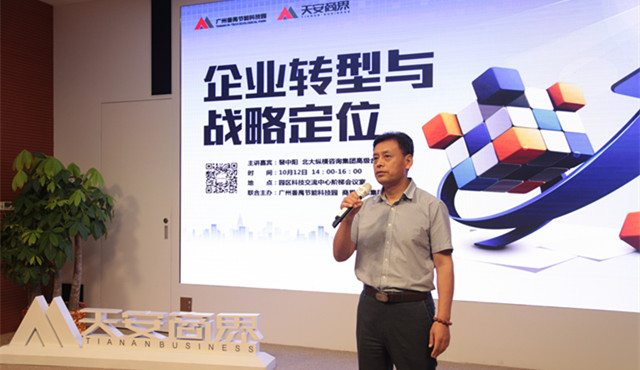 10月12日,天安商界大讲堂特邀北大纵横咨询集团高级合伙人裴中阳先生来到广州天安番禺科技节能园,为大家分享《企业转型与战略定位》。