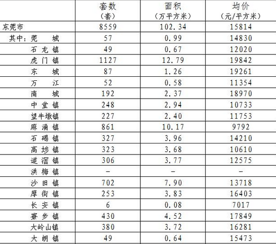 东莞7镇街一手房均价未过万