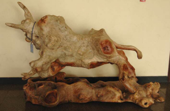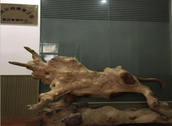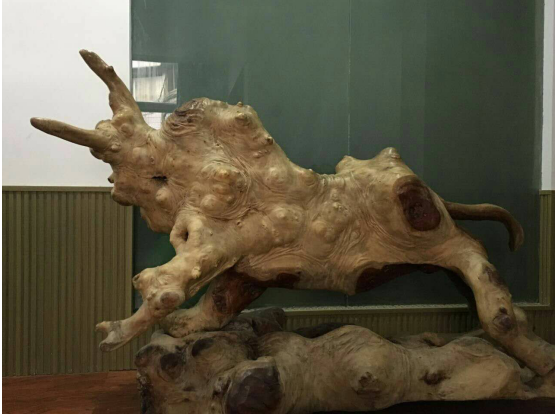 我怀着激动的心情探寻着这条消息的地址,最终来到了重庆市黔江区,见到了这头纯天然的牛,众观材质为红榉木,整体无切割痕迹,栩栩如生。