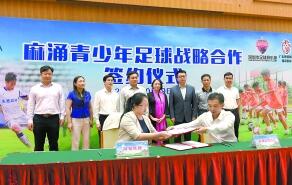 昨日上午,深圳市足球俱乐部、广东某创新投资集团分别与麻涌镇体育协会签订战略合作协议,麻涌U17足球队全体队员将被输送到深圳市足球俱乐部,麻涌U15(麻涌一中少年足球队)、U12(麻涌中心小学少儿足球队)、U8等3支青少年足球队将与广东某创新投资集团共建合作。至此,麻涌青少年足球将进入专业化训练管理、市场化运作的新阶段,麻涌足球小子将有望进入中甲、中超等中国顶级联赛踢球,实现他们的足球梦想。