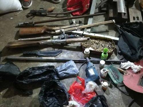 “行动!”确定人员、装备一切准备到位,张文科发出行动指令,转瞬间,民警冲进房间,里外房间7名男子还没反应过来,就被牢牢控制。小房子里,打磨、电焊、切割设备一应俱全,地上散落火药、弹珠、枪械零件一大堆。房间内、床头柜以及停放在门外的三轮摩托车、马自达小车内,民警分别查获5支可击发的成品枪支。在一名嫌疑人家里,又有两把成品枪支被发现。民警当场还缴获成品子弹四五千枚。
