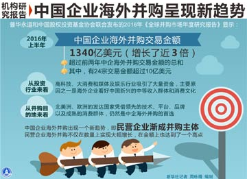 与此同时,今年前三季度,中国企业海外并购延续了快速增长的势头。商务部数据显示,1至9月,中国企业共实施海外并购项目521个,实际交易金额674.4亿美元,涉及67个国家和地区的18个行业大类,已经超过2015年全年544.4亿美元的并购金额。
