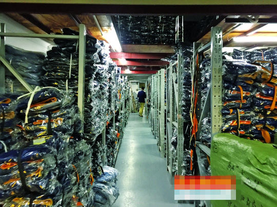 为了应对今年的双十一,马先生现场准备了8万件牛仔,装满了两大仓库,并在外面启用了一个超过1000平米的厂房用于存放。此外,他还与16家加工企业做好对接,随时准备订单过来后的赶货。