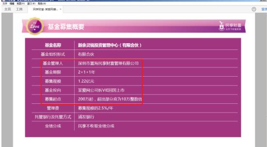 私募基金工作人员称:“国内某婚恋网站投资基金项目募资金额总计1.22亿,基金期限为2+1+1,虽然项目已于7月关闭,但现在还能参与。”这或许意味着珍爱网此次募资并不顺利。民享财富投资项目书显示,该项目为某“国内大型婚恋网站股权投资基金”,被投资公司高管团队包括董事长李松、CEO陈思等,与珍爱网官网高管团队信息完全一致。