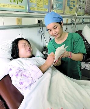 经过7小时13分钟的产程,郑女士顺产一男婴,全程陪伴在旁的杨玉娟写上:“宝宝5斤半,男孩,先抱过来给你亲一下,看看。”她看着刚出生的宝宝,不停地笑,并拉了拉杨玉娟的手,用最简单的手势向其表达自己最诚恳的谢意。(记者董哲 通讯员黄秋慧摄影报道)