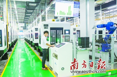 在东城东莞劲胜精密组件股份有限公司的车间里,10条生产线上180台机器正在运转,可车间里却没几个工人,这里的主角是81台机械手臂。