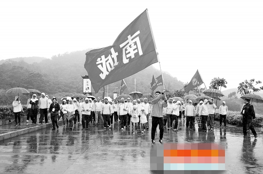 当天虽下着雨,但参加活动的人群热情不减,2000多名穿着荧光绿色运动服,背着印有社会主义核心价值观24字蓝色运动包的徒步爱好者从水濂山牌楼出发,环湖绕行,欣赏水濂山美丽的湖光山色。(记者 韩成良)(来源:南方都市报 )