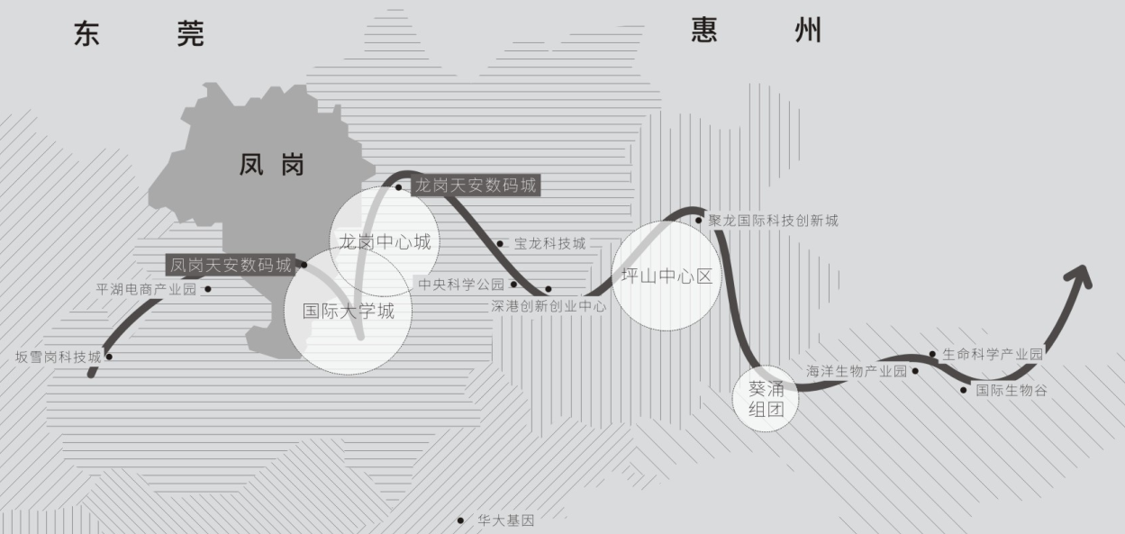 区位上,凤岗作为紧邻深圳龙岗,并深处深圳腹地,三面紧靠深圳,一面开口东延直上莞惠的区位已经具有巨大优势,深圳创新之都的改革之路凤岗一路见证,并借鉴,莞惠制造工业的发达也为凤岗提供了阶段性的发展时机,如今,不管是深圳还是莞惠地区,与凤岗的关系都密不可分,并成为其发展助力。