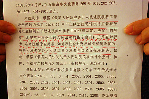 查看该《裁定书》,记者看到这样的字句:本院认为,根据《最高人民法院执行工作若干问题的规定(试行)》中“上级法院通过执行监督程序可以直接纠正下级法院案件执行中的错误裁定、决定”的规定,本院应当根据上级人民法院的指令自行纠正原查封行为。