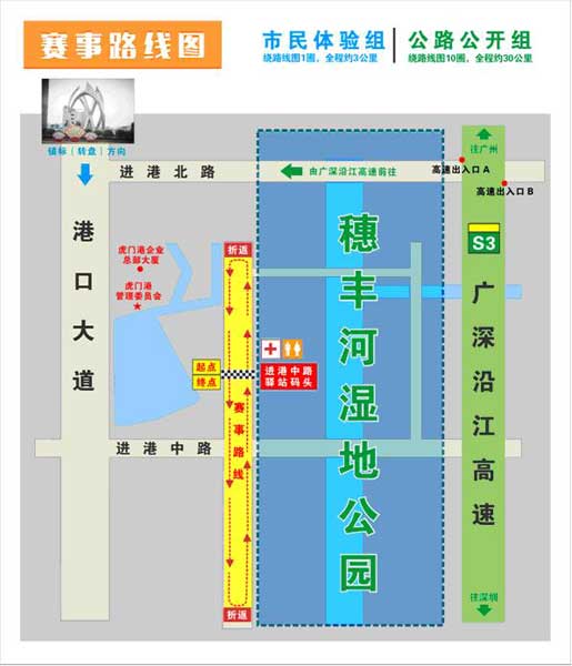 据了解,为确保自行车比赛的安全、顺利举行,沙田镇虎门港将对进港中路(部分路段)以及穗丰年路进行临时交通管制,管制时间为2016年12月17日晚上18:00至12月18日上午12:00。