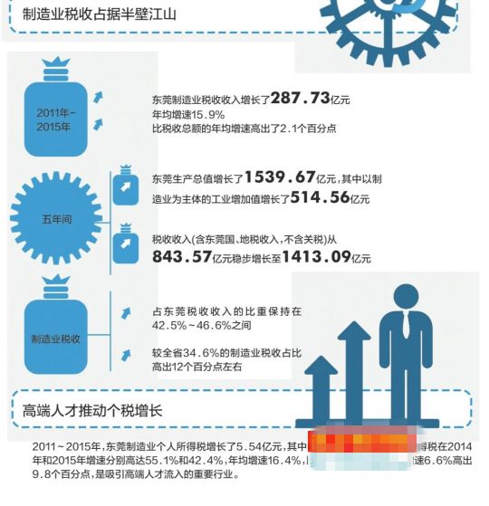 16日,东莞市地方税务局发布一组数据,以2011-2015年年均15.9%的制造业税收增速,佐证东莞制造业的“突围”。17日,中央党校教授周天勇则提出应对美国特朗普发动的制造业争夺战,中国要解决“死亡税率”问题,2015宏观税负率达到36 .9%。