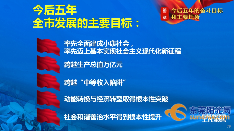 报告时,大会在主席台两侧的屏幕同步播放幻灯片,直观展现报告内容,这是东莞市人民代表大会首次在全体会议上使用幻灯片演示政府工作报告。