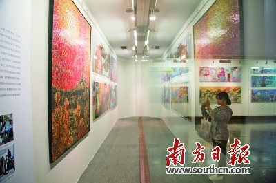 与会嘉宾参观了东莞广州美院文化创意研究院协同创新成果展。在这里,很多以“非物质文化遗产”名义束之高阁的东莞标志性资源与文化,竟然被一众创意团队重新“玩”起来。