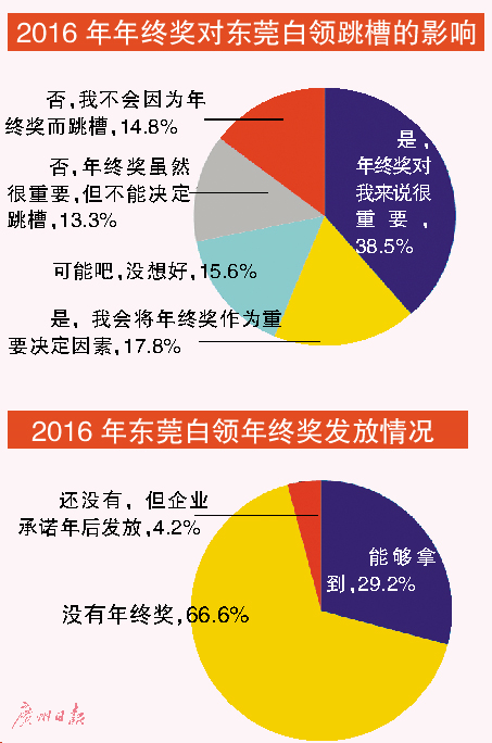 眼下,对于身在职场的人来说,讨论得最多的恐怕就是年终奖了。日前,智联招聘推出2016年东莞白领年终奖调查,结果显示,东莞白领年终奖平均值约为11320元,年终奖满意度指数为2.04,低于全国平均水平,也低于上一年。其中,超三成受访白领预计能拿年终奖,近六成白领则因年终奖考虑跳槽。
