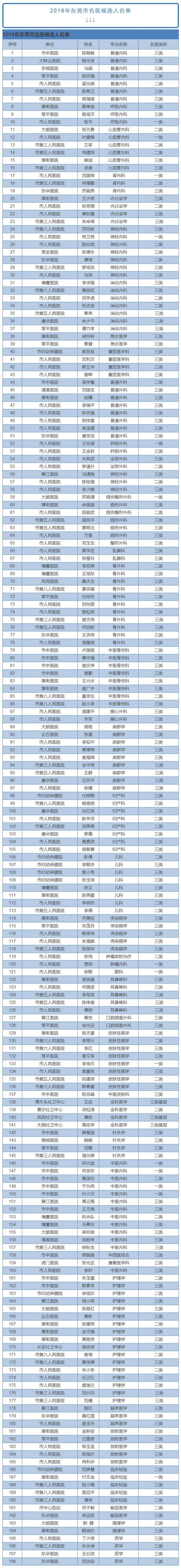 东莞公示198个名医候选人名单