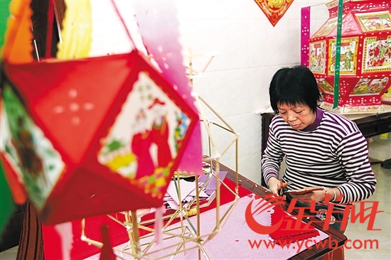 记者在现场看到,洪梅传统花灯制作工序繁琐,每道工序都需要人手完成。虽然忙得不可开交,但兴姨却乐在其中。当这一盏盏花灯承载着祝福高高挂起点亮时,代表着传承。(记者 余宝珠 王俊伟)(来源:羊城晚报)