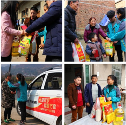 从去年12月底开始,开瑞汽车下乡送温暖活动也火热开展起来,走近返乡群体,走进贫困家庭,为他们带去了当地风俗年货、米油、慰问金等,更是送去了浓浓的温情和节日祝福。截至目前,近一个月的时间共走访鲁豫、中南、华南、东北等地区10余个省、530个乡镇,援助1902户、5706人,将价值1000000元的物资和现金送到困难群众手中,让困难群众能够过个幸福年。