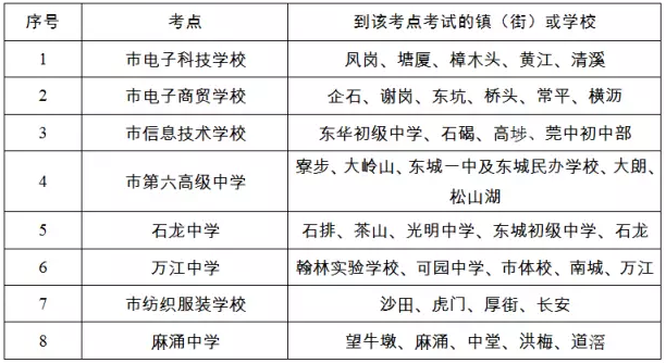 继续采取往年的做法,全市分片设立8个固定考点,邻近几个镇街的考生由学校组织前往指定考点进行考试。考生的考试时间由市中招办统一安排。