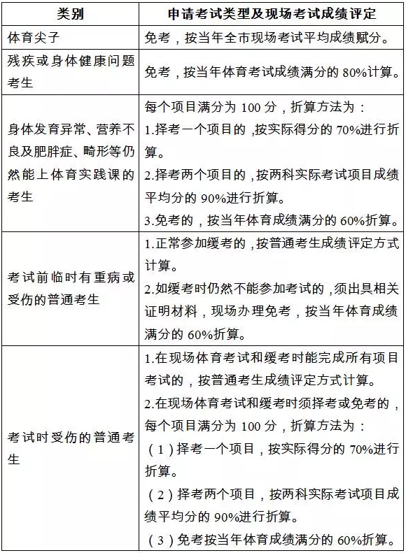 体育尖子和特殊考生的现场考试成绩评定方法如下: