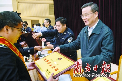 会上,市领导给2016年度全市优秀公安分局局长、优秀民警等荣誉奖项获得者颁奖。