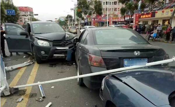 SUV突然“失控”与多辆汽车发生碰撞