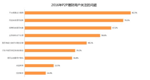 在调研样本中,大部分P2P投资者对于行业的政策以及趋势变化有一定的感知,其关心的主要问题也围绕在平台风险和投资安全上,主要包括平台的背景实力是否强大、风控体系是否成熟、业务结构是否合理等多个方面,收益率高低仅列投资者关心关心问题的第八位。