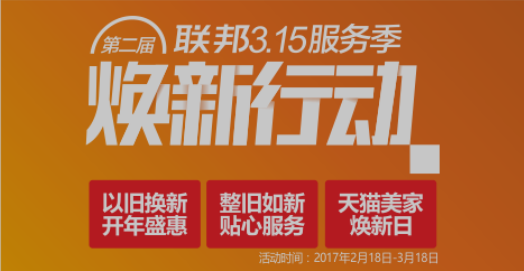这次联邦3.15服务季焕新行动从2月18日持续到3月18日,包括以旧换新、整旧如新、天猫美家三大活动!旧家变新家,还想简单快捷省钱?快点来联邦家私官网登记报名吧!