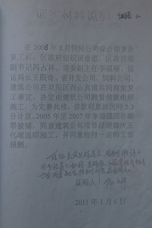 2005年8月份,腾庆玉向民间成功融资,工程复工。“没想到李德强于2006年5月份再次被批捕,工程再一次停工。”腾庆玉说。