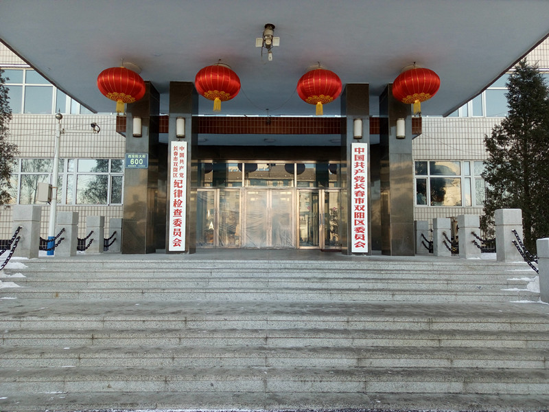 (年关将至,长春市双阳区委门前已经挂起了大红灯笼)