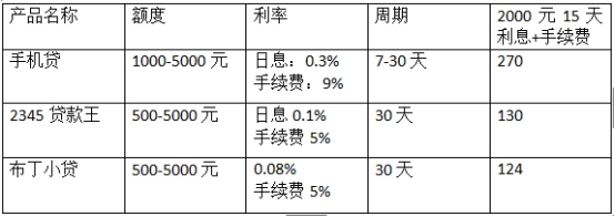 布丁小贷与其他产品做比较